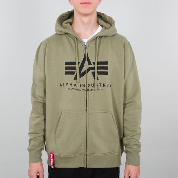 Basic Zip Hoody - olive kapucnis pulóver - Alpha Industries  Kevés az Alpha kínálatában az olyan kapucnis pulcsi, melynek elején végig cipzár fut. Ez a modell ezen kivételek egyike. A Basic sorozat darabjaként, szinte egészen biztos, hogy minden Alpha rajongó szekrényében ott kell, hogy legyen. Praktikus, meleg, puha anyaga miatt viselheted szabadidős tevékenységhez, vagy csak a boltba átugrani is kiváló. Miután szeretsz stílusosan öltözködni a munkahelyeden kívül is, ez a pulóver jó választás lesz számodra. Az elején hatalmas méretű Alpha logó található és egy a cipzár által félbevágott kenguruzseb is. Normál szabásvonalú, rugalmas passzéval a derék- és csukló részen. A kapucni mély, húzózsinórral szűkíthető. - nagyméretű Alpha logó a mellkason- Basic sorozat alap darabja