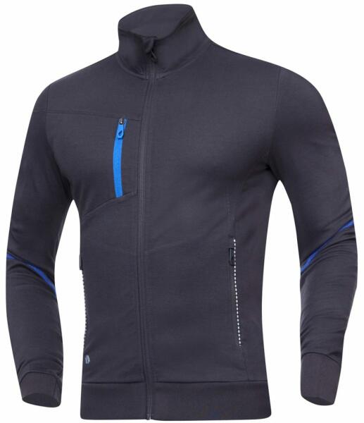 A modern férfi pulóver egy különleges technikai anyagból, az ARDON®TOPLYRON-ból készült, amely légies, puha és sima tapintású. Ugyanakkor sima felülete tökéletesen taszítja a porszemcséket, nem elektrolizál, nem gyűrődik, méretstabil és nagyon kényelmes viselet. Ez teszi a pulóvert tökéletes választássá sportoláshoz, szabadtéri és szabadidős tevékenységekhez vagy munkához. A pulóver anatómiailag formázott, funkcionális slim-fit szabású, amely tökéletesen illeszkedik a testhez és kiemeli a sziluettet. Állgallérral rendelkezik, és állvédővel ellátott cipzárral záródik. A kapucnis pulóver 1 cipzáras mellzsebbel és 2 cipzáras oldalzsebbel rendelkezik. A viselés közbeni láthatóság javítása érdekében a pulóver vékony, szegmentált fényvisszaverő csíkokkal van ellátva.