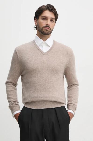 Benetton gyapjú pulóver könnyű, férfi, bézs - bézs M