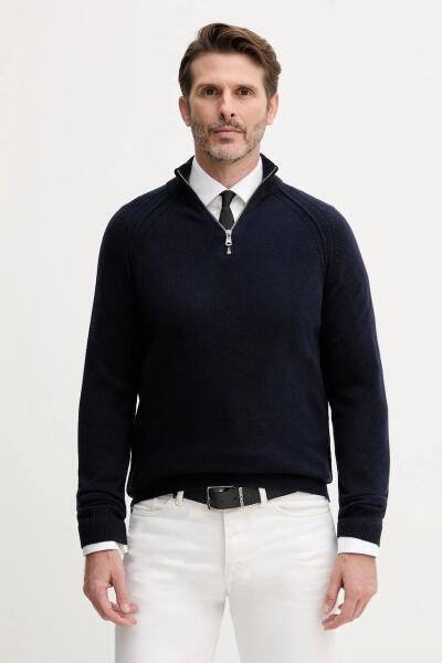 Benetton gyapjú pulóver sötétkék, félgarbó nyakú, 1006U202B - sötétkék M