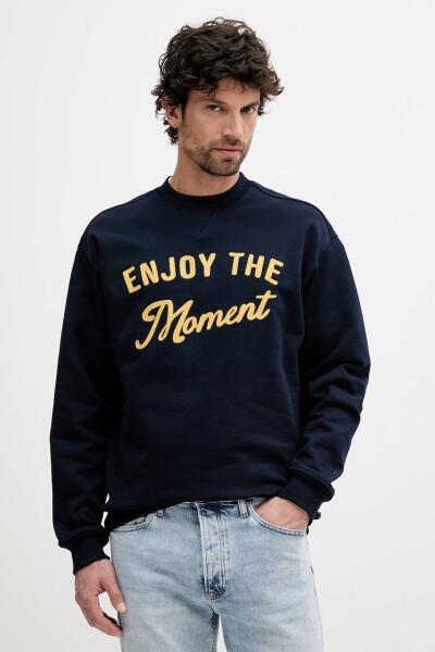 Benetton pamut melegítőfelső sötétkék, nyomott mintás, 3NWZU109W - sötétkék M