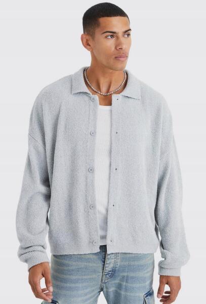 Boohooman Szürke Sima Klasszikus Laza Pulóver Gallérral Gombokkal Boohooman M