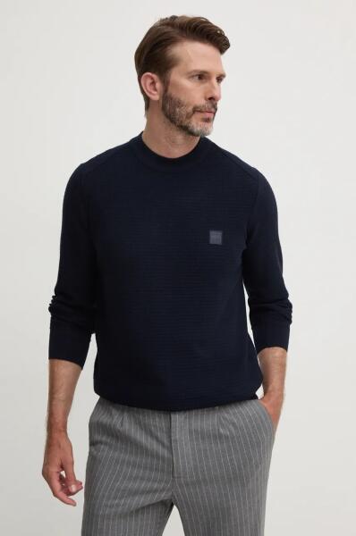 BOSS Orange pulóver kasmír keverékből könnyű, sötétkék, 50527584 - sötétkék XXL