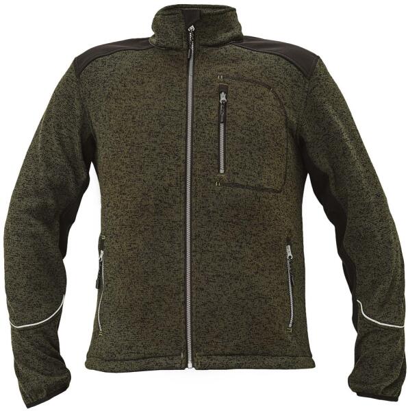 Modern, cipzáras férfi pulóver kötött anyagból, eredeti mintás kivitelben. A pulóver belül bélelt, hogy kellemes meleg legyen. A váll és az ujjak részei kontrasztos fekete színű softshell anyaggal vannak megerősítve. Az alsó mandzsetta szélessége állítható, és az ujján dekoratív és praktikus fényvisszaverő szegély található. Nem hiányzik a cipzáras mellkasi zseb és 2 cipzáras oldalzseb sem. A kényelmes viselet érdekében a pulóver ujja végén hüvelykujjhurok is található.