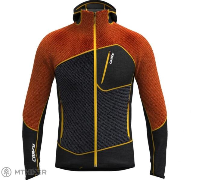 Crazy Pull Zenith pulóver Hibrid kapucnis pulóver puha és meleg szőrmeszerű anyagból , ideális szabadtéri életmódhoz és alacsony intenzitású tevékenységekhez. Ez a "bundás" anyag Fluffy Warm anyagból, míg az oldalsó panelek és az ujjak rendkívül rugalmas, technikai melanzsos High Performance anyagból készültek.