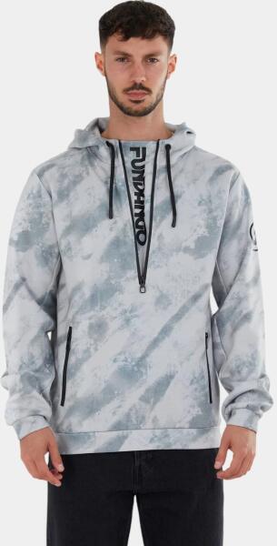 Fundango férfi A belebújós fazonú Fundango Astrea Tech Pullover férfi kapucnis pulóver Loose Fit szabása biztosítja a teljes mozgásszabadságot, húzózsinórral állítható, fix kapucnija és bordázott szegélyei pedig kívül rekesztik a hideg szelet. Elülső cipzáras zsebeiben mindig kézközelben tudhatod fontos értékeid, illetve áthűlt kezeid is megmelegítheted. Puha tapintású technikai anyaga elvezeti a nedvességet testedről, ugyanakkor megőrzi annak hőjét, és melegen tart anélkül, hogy súlyos plusz rétegekre lenne szükség, így testhőmérsékleted tartósan állandó marad. Jól lélegző anyagról van szó, amely az egész élettartama alatt megőrzi e tulajdonságait.