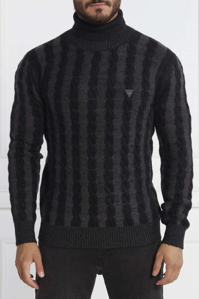 Guess Férfi Magasnyakú Pulóver: Kényelem és Stílus ? Ez a Guess férfi pulóver tökéletes választás a hidegebb napokra. A puha, kényelmes anyag kellemes viseletet biztosít, míg a stílusos kábelkötéses mintázat modern megjelenést kölcsönöz. A magas nyak extra meleget és védelmet nyújt. Főbb jellemzők:Anyag: 57% poliamid, 33% gyapjú, 10% akril - puha, meleg és tartós Szín: Fekete/Sötétszürke - időtlen és sokoldalú kombináció Fazon: Normál - kényelmes viselet Nyakkivágás: Magas nyak - extra meleg és védelem a hideg ellen Mintázat: Kábelkötés - stílusos és elegáns Guess logó: Diszkrét, elegáns márkajelzés Stílusos és praktikus: Ez a pulóver tökéletes választás mindennapi viseletre, de alkalmi eseményekre is megfelelő. A magas minőségű anyagokból készült, így hosszú ideig élvezheti a kényelmét és a stílusát. Kiváló választás azoknak a férfiaknak, akik értékelik a minőséget és a kényelmet.