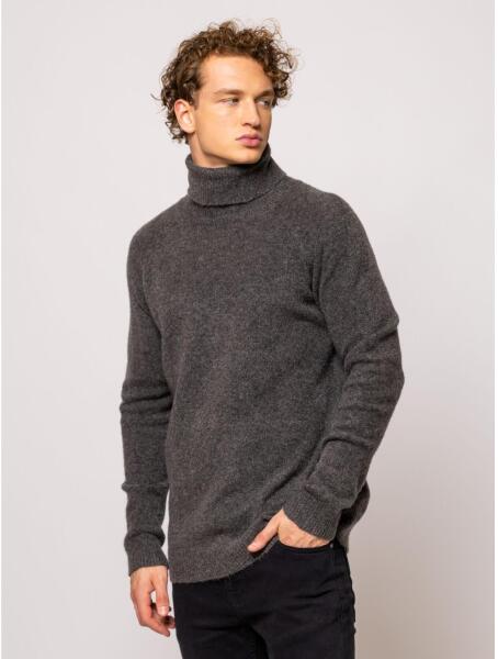 Férfi kötött, garbó nyakú pulóver trendi szabással, bordás kötött nyakkal, kézelővel és aljjal, kis bőr márkajelzéssel az elején
