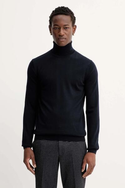 HUGO BOSS gyapjú pulóver könnyű, rózsaszín, garbónyakú - sötétkék XXL