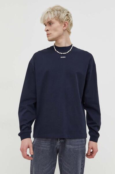HUGO BOSS pamut hosszúujjú sötétkék, sima - sötétkék XL