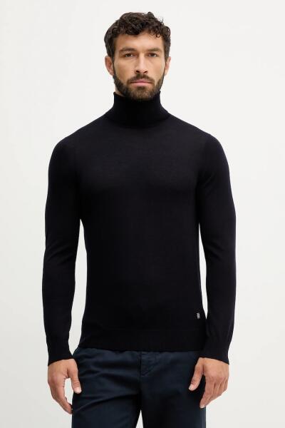 Liu Jo gyapjú pulóver könnyű, sötétkék, garbónyakú, QXX072. MA27P - sötétkék L