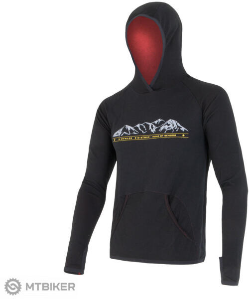 A pulóver kiváló a városba és a hidegebb időben a természetben való könnyebb túrákhoz . Kapucnival és elöl "kenguru" zsebbel rendelkezik.