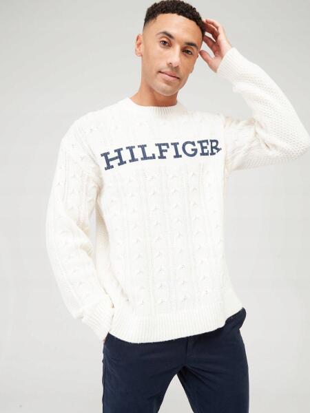 Tommy Hilfiger Ekrü Fonott Logós Pulóver (XL) (555617)