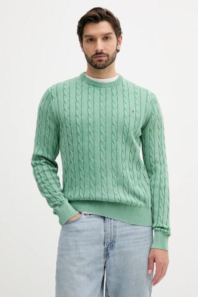 Tommy Hilfiger pamut pulóver könnyű, zöld, MW0MW39524 - zöld XL - answear - 59 990 Ft