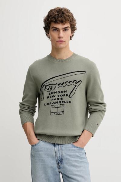Tommy Hilfiger pamut pulóver zöld, DM0DM22253 - zöld L