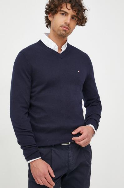 Tommy Hilfiger pulóver kasmír keverékből könnyű, férfi, sötétkék - sötétkék M - answear - 39 990 Ft